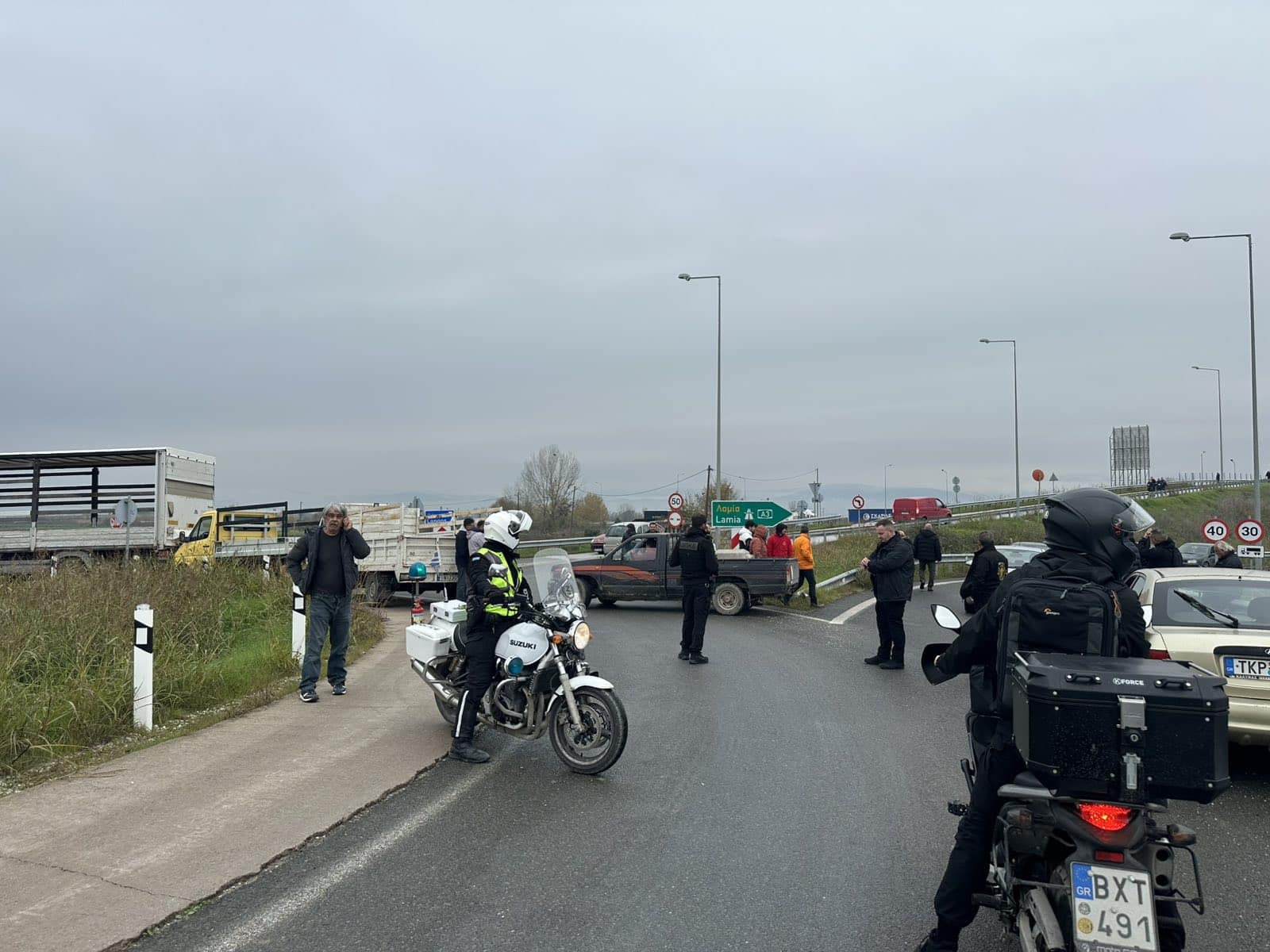 Στο σημείο παρατάχθηκαν τρακτέρ και αγροτικά μηχανήματα, με αποτέλεσμα να διακοπεί η κυκλοφορία των οχημάτων και στα δύο ρεύματα.