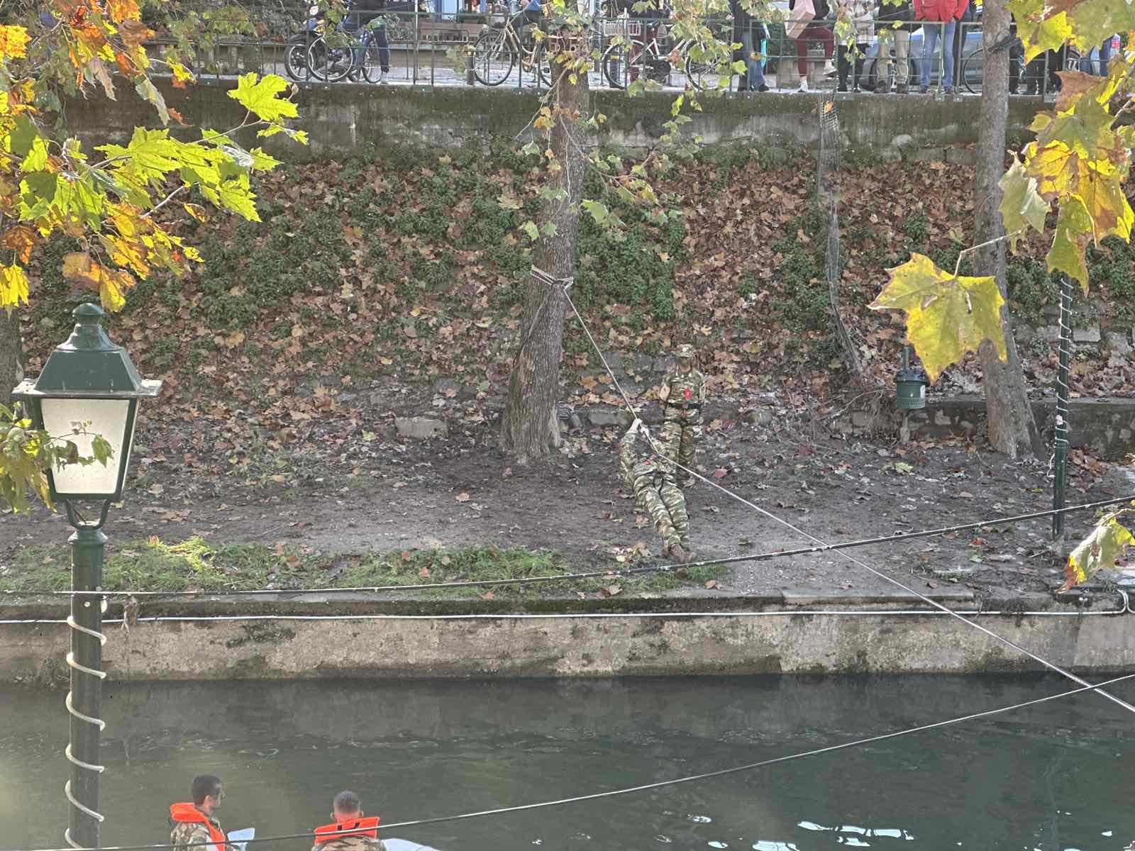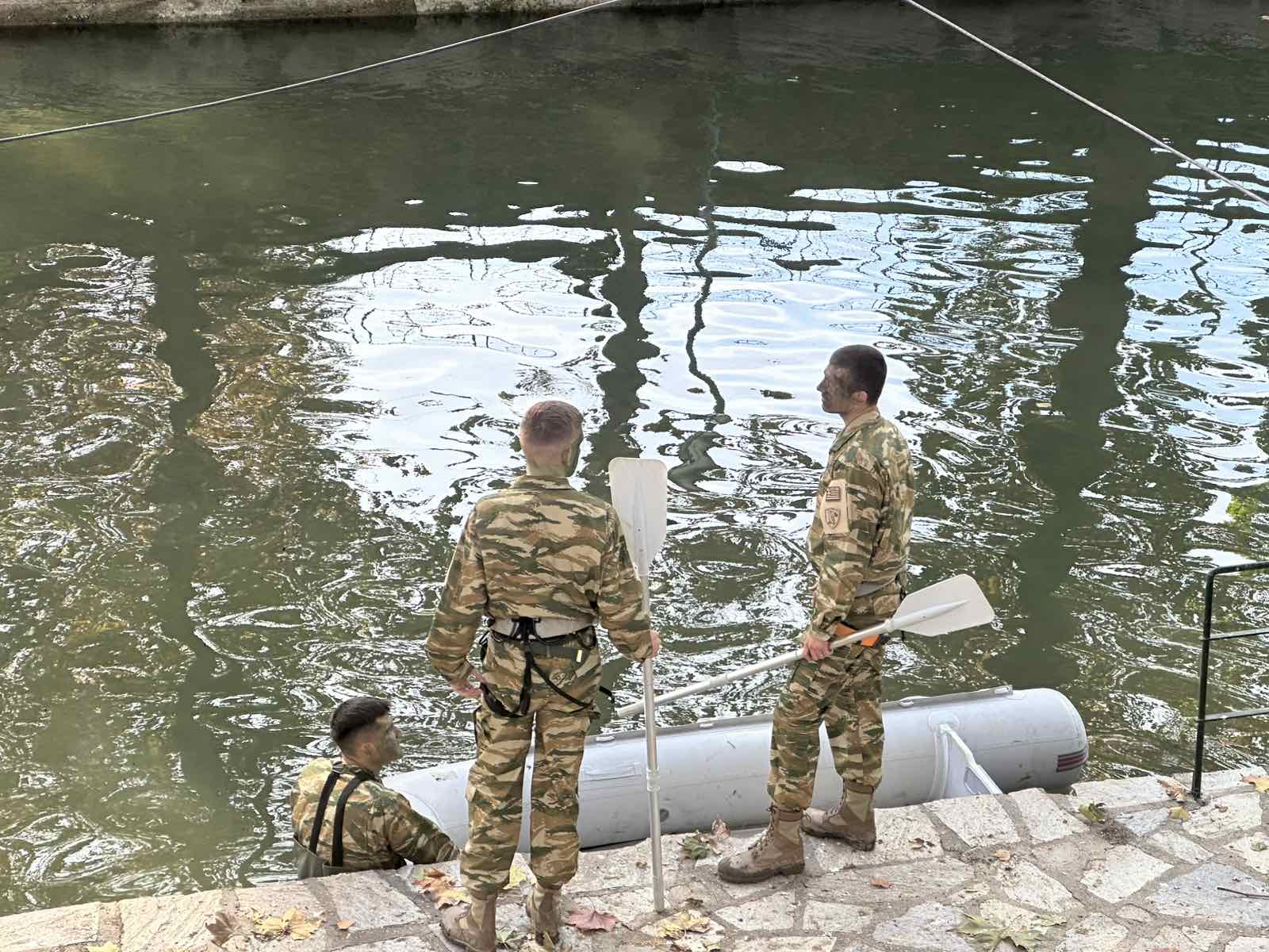 Εντυπωσιακό σκηνικό δημιούργησαν σήμερα το πρωί στο κέντρο των Τρικάλων οι σπουδαστές της Σχολής Μονίμων Υπαξιωματικών, παρουσιάζοντας ειδικές ασκήσεις στον Ληθαίο ποταμό.