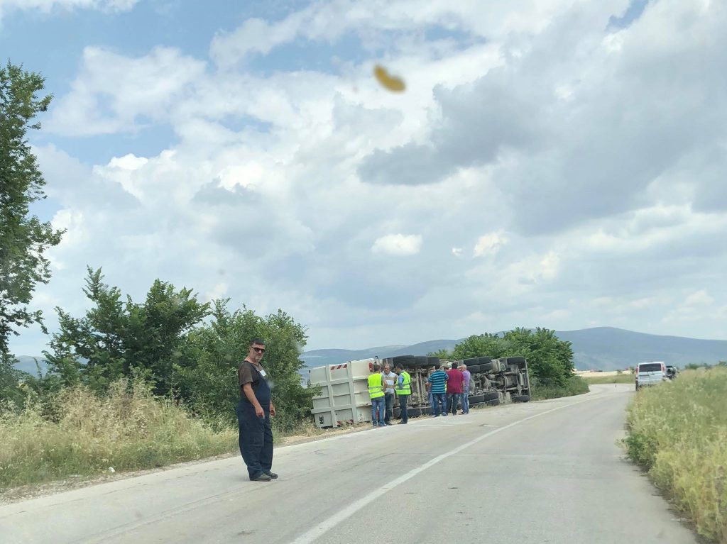 Ανατροπή νταλίκας στα Τρίκαλα.