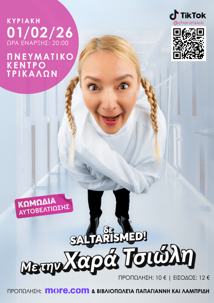 Μετά τις επιτυχημένες sold out παραστάσεις σε Ελλάδα και εξωτερικό (Στουτγκάρδη, Φραγκφούρτη, Στοκχόλμη, Ζυρίχη, Velbert Menden, Μελβούρνη και το διεθνές φεστιβάλ κωμωδίας του Σίδνεϊ) η Χαρά Τσιώλη έρχεται στα Τρίκαλα!