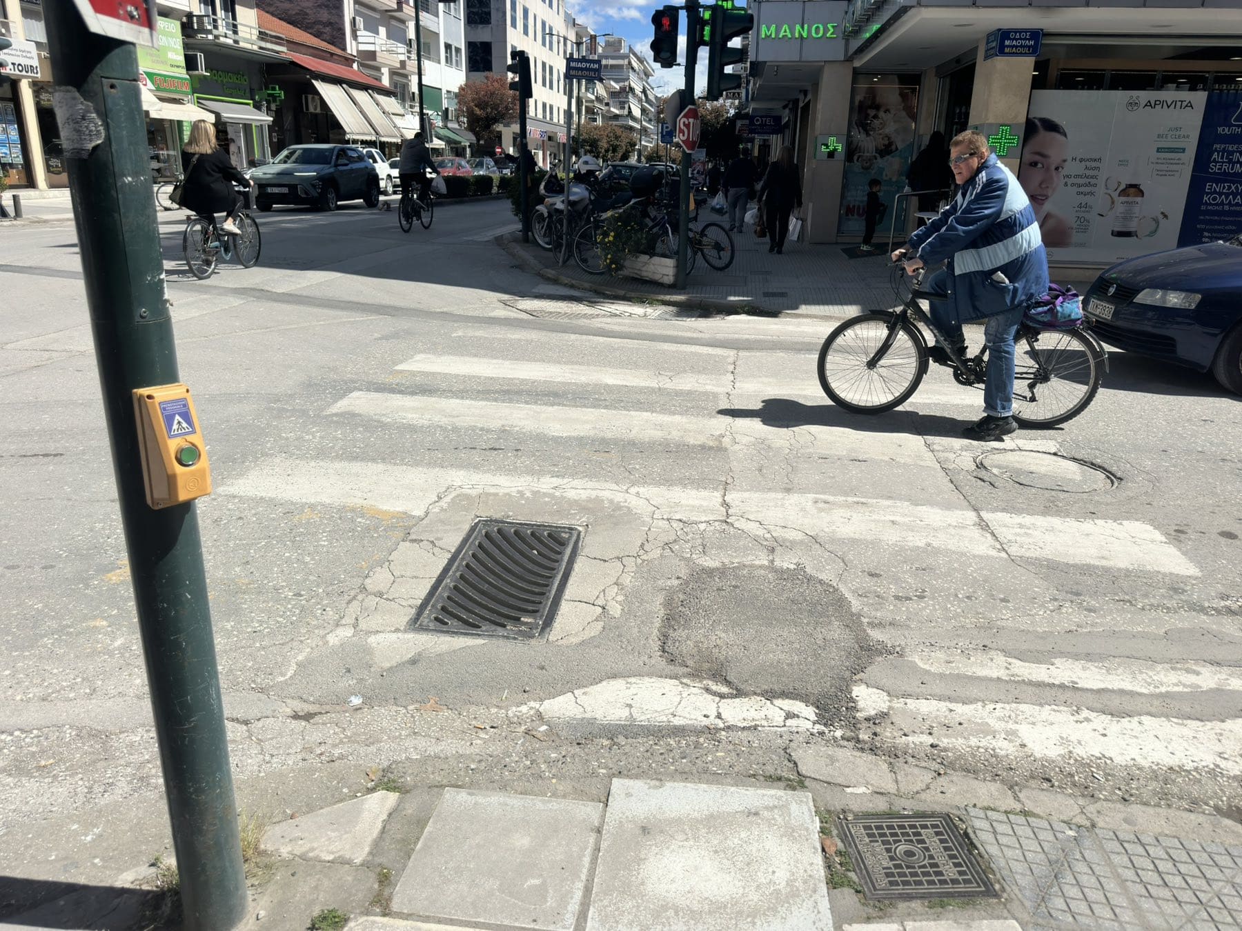Σε κεντρικούς δρόμους και διαβάσεις της πόλης, η διαγράμμιση είναι φθαρμένη, ξεθωριασμένη ή σε σημεία σχεδόν ανύπαρκτη, όπως φαίνεται και στις φωτογραφίες που ακολουθούν.