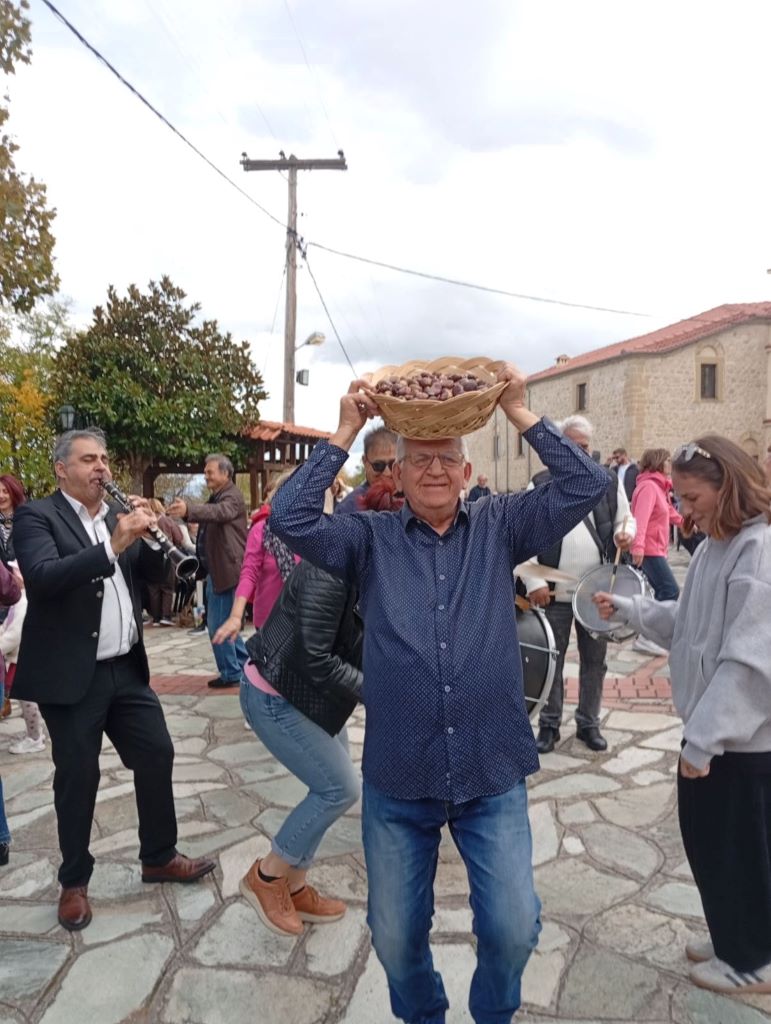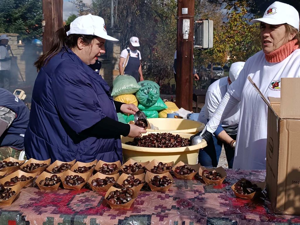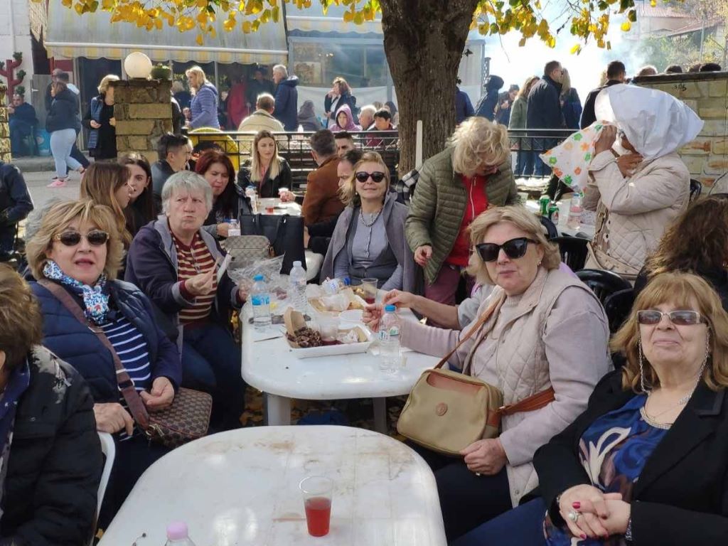 Οι συμμετέχοντες απόλαυσαν τη ζεστή φιλοξενία των κατοίκων του χωριού και γεύτηκαν ψητά και βραστά κάστανα, συνοδευόμενα από τοπικό κόκκινο κρασί που προσφέρθηκε απλόχερα, δημιουργώντας μια γιορτινή και φιλόξενη ατμόσφαιρα.