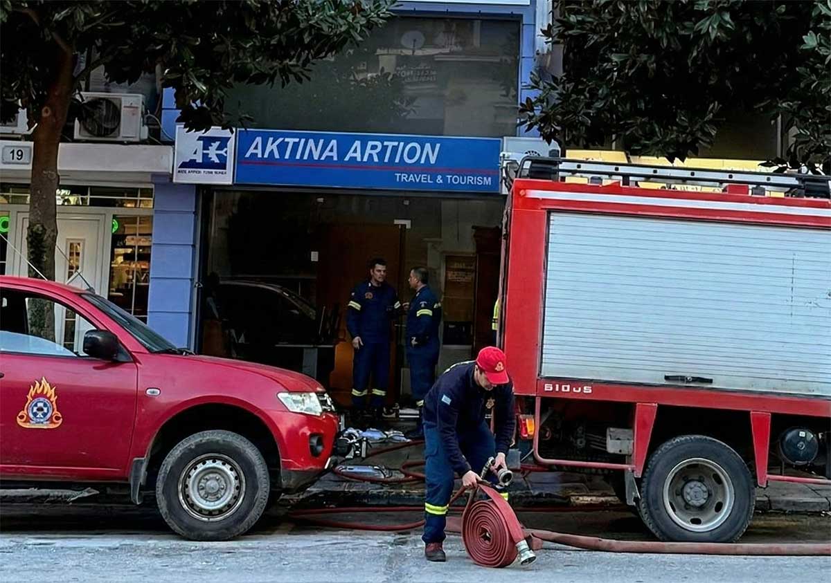 Φωτιά εκδηλώθηκε το απόγευμα της Τρίτης σε ισόγειο τουριστικό γραφείο επί της οδού Στρατηγού Σαράφη, στο κέντρο των Τρικάλων.