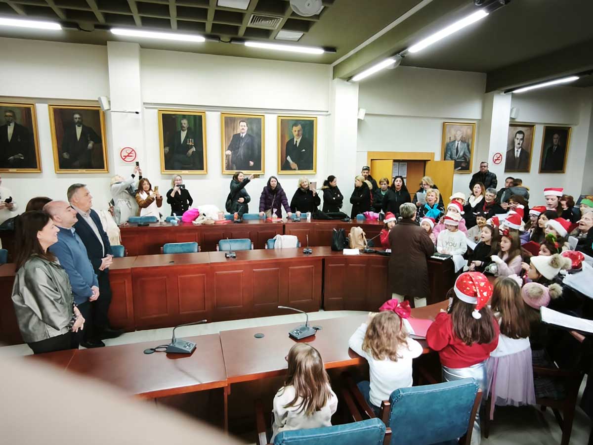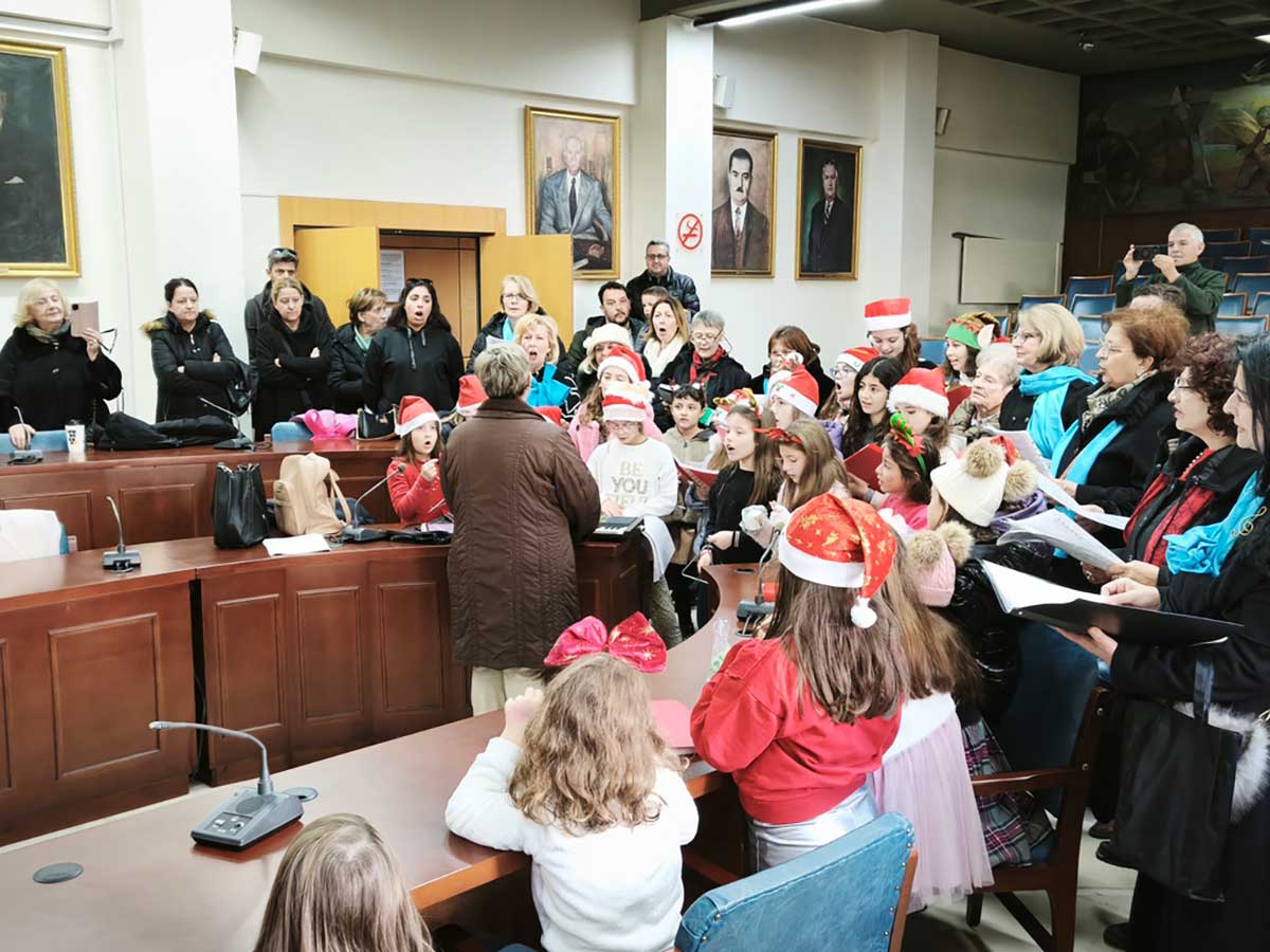 Χριστουγεννιάτικη ατμόσφαιρα δημιούργησαν στο Δημαρχείο Τρικάλων τα παιδιά της Παιδικής Χορωδίας του Δημοτικού Ωδείου Τρικάλων, τα οποία επισκέφθηκαν τον χώρο τη Δευτέρα 29 Δεκεμβρίου και έψαλαν τα παραδοσιακά κάλαντα.