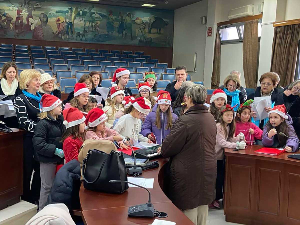 Τα παιδιά έψαλαν κάλαντα στον Δήμαρχο Τρικκαίων Νίκος Σακκάς, καθώς και στους αντιδημάρχους Σοφία Αλεστά και Μιχάλης Λάππας, μεταφέροντας το γιορτινό κλίμα των ημερών με τις παιδικές φωνές και τις χριστουγεννιάτικες μελωδίες τους.