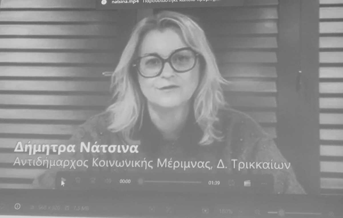 Η αντιδήμαρχος Οικονομικών και Διοικητικών Υπηρεσιών Σοφία, καλωσορίζοντας τα στελέχη της Δ/νσης Κοινωνικής Μέριμνας και ωφελούμενους/ες, μετέφερε τον χαιρετισμό του Δημάρχου Τρικκαίων Νίκου Σακκά και σημείωσε τη σύνδεση της τεχνολογίας με τον κοινωνικό τομέα στα Τρίκαλα και στα χωριά, προσφέροντας υποστήριξη σε ωφελούμενους και ωφωλούμενες. Η αντιδήμαρχος Κοινωνικής Μέριμνας Δήμητρα Νάτσινα με βιντεοσκοπημένο μήνυμά της εστίασε στη φράση «Κανείς Μόνος», δίνοντας τον τόνο, για το πώς προσφέρονται οι υπηρεσίες από τον Δήμο Τρικκαίων στους πολίτες των Τρικάλων «που χρειάζονται άμεση βοήθεια».