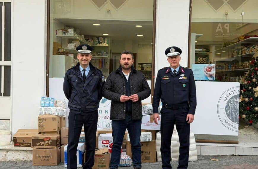 Με πράξη προσφοράς και αλληλεγγύης, η Διεύθυνση Αστυνομίας Τρικάλων στήριξε το Κοινωνικό Παντοπωλείο του Δήμου Μετεώρων ενόψει των γιορτών.