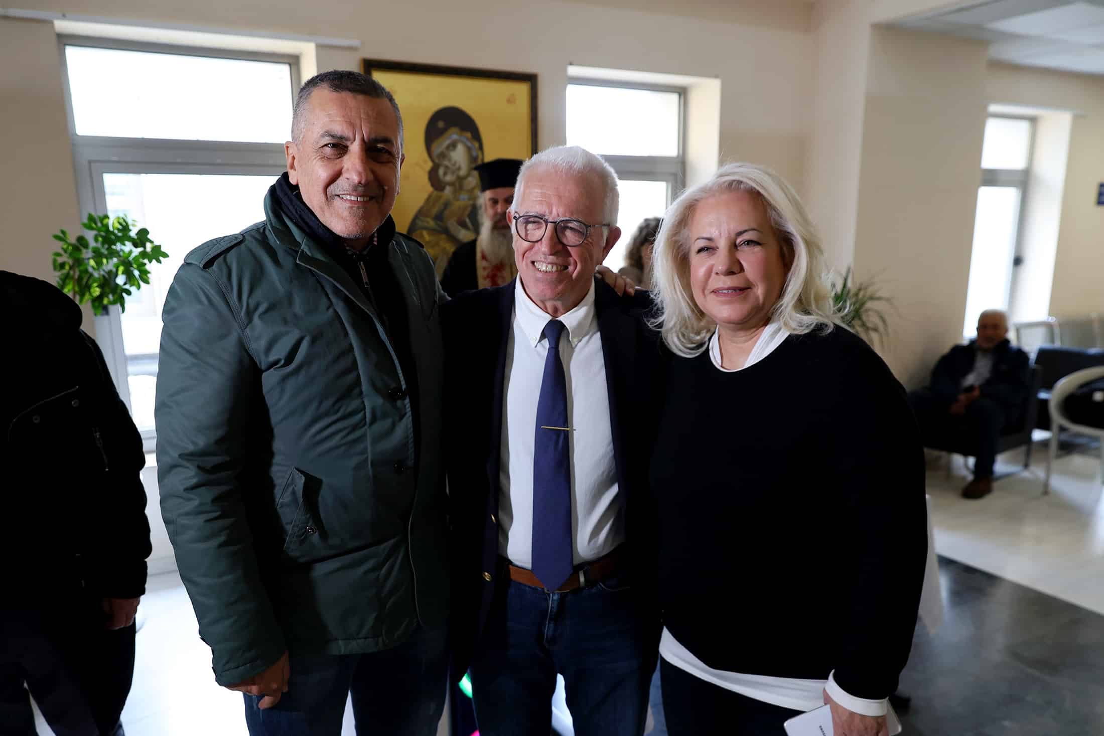 Μετά τις ανακοινώσεις ο Περιφερειάρχης παρέστη στο ευχέλαιο και συνομίλησε με γιατρούς και νοσηλευτές ανταλλάσσοντας ευχές για τις γιορτές.