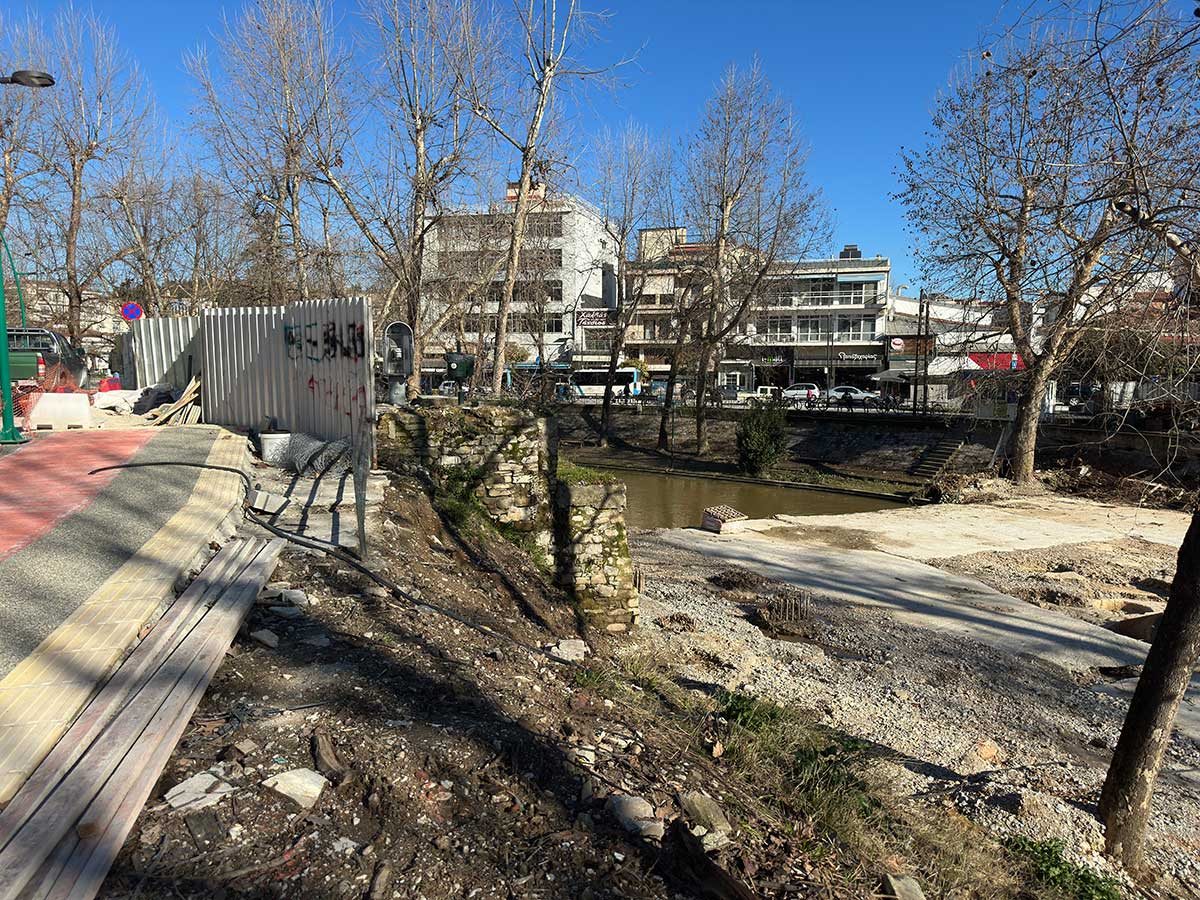 Η γέφυρα παραμένει κλειστή. Το σημείο θυμίζει πρόχειρο εργοτάξιο. Μπάζα, σκόνη και ημιτελείς παρεμβάσεις στο πιο κεντρικό σημείο της πόλης. Για τους κατοίκους, η λέξη «ξεκινάμε» έχει χάσει το πραγματικό της νόημα και έχει μετατραπεί σε απλή ανακοίνωση χωρίς αντίκρισμα.