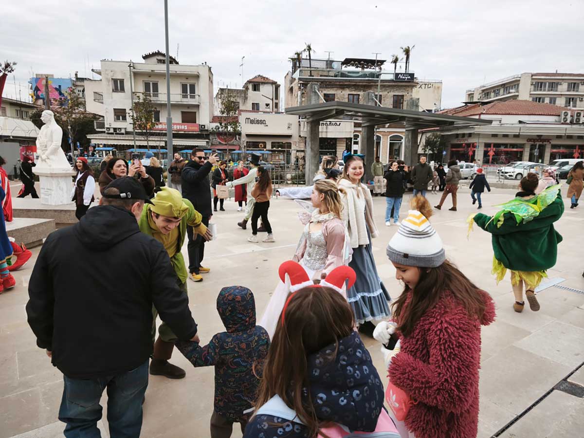 Δίπλα στη μουσική, τον τόνο έδωσαν οι πρωταγωνιστές των γιορτών. Ο Άη Βασίλης, ο Πίτερ Παν, η Τίνκερμπελ, ο Κάπτεν Χουκ, τα Ξωτικά και τα Χαμένα Παιδιά της Χώρας του Ποτέ έκαναν την εμφάνισή τους, με μικρούς και μεγάλους να σταματούν για φωτογραφίες, χορό και ευχές για τη νέα χρονιά.