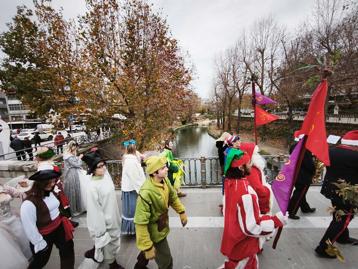 Από την πλατεία Εθνικής Αντίστασης και τη λαϊκή αγορά, μέχρι το παλιό εμπορικό κέντρο, την πλατεία Ηρώων Πολυτεχνείου, την Ομπρέλα του Ζογγολόπουλου, τον πεζόδρομο της Ασκληπιού και το Δημαρχείο, οι γνώριμες νότες των καλάντων και των γιορτινών τραγουδιών συνόδευσαν τον αποχαιρετισμό του χρόνου.
