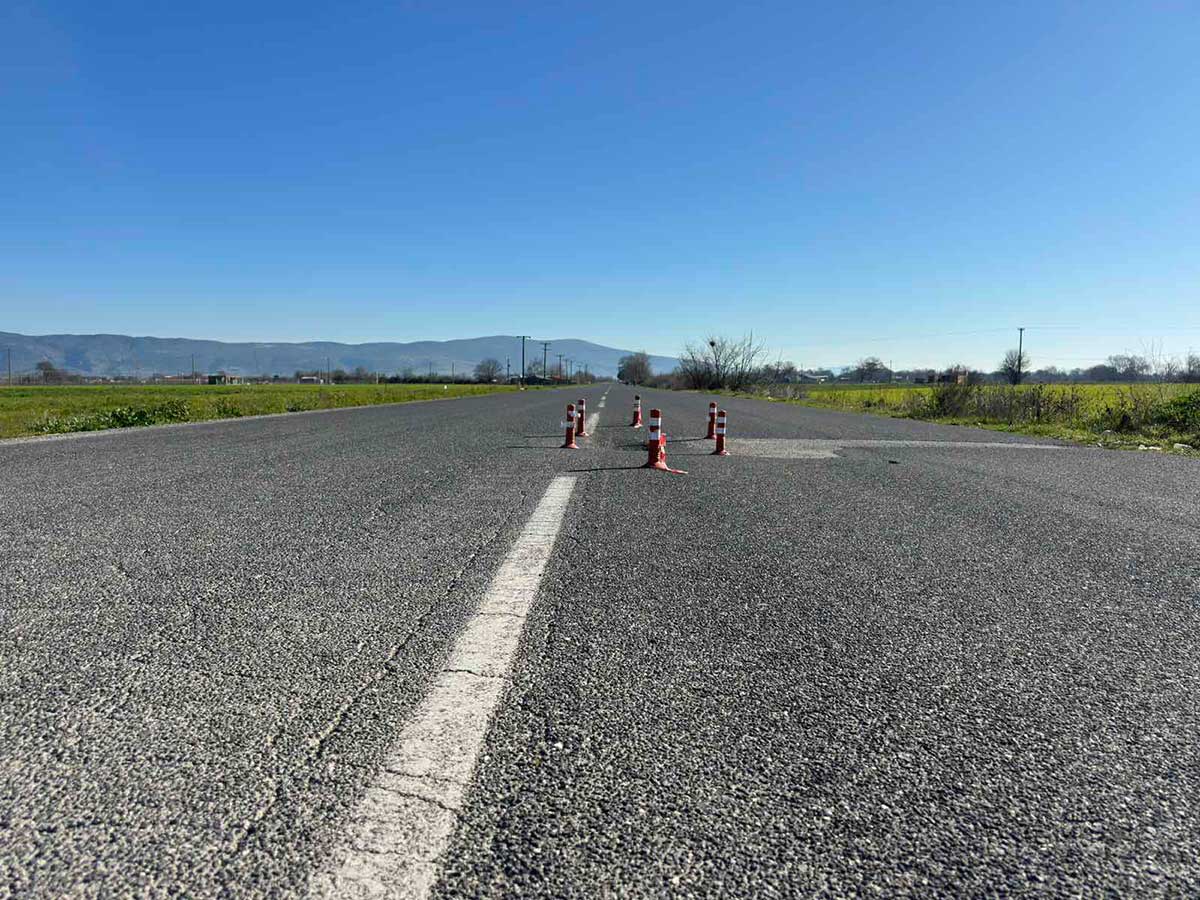 Όπως κατέγραψε το trikalanews.gr, τη μέση της μεγάλης ευθείας, όπου αναπτύσσονται συχνά υψηλές ταχύτητες, το οδόστρωμα έχει ανοίξει και έχει δημιουργηθεί μια βαθιά τρύπα. Η «επισκευή» που επιλέχθηκε είναι η τοποθέτηση κώνων γύρω από το σημείο – μάλιστα βιδωμένων στην άσφαλτο – δίνοντας την εικόνα μιας… μόνιμης προσωρινής λύσης.
