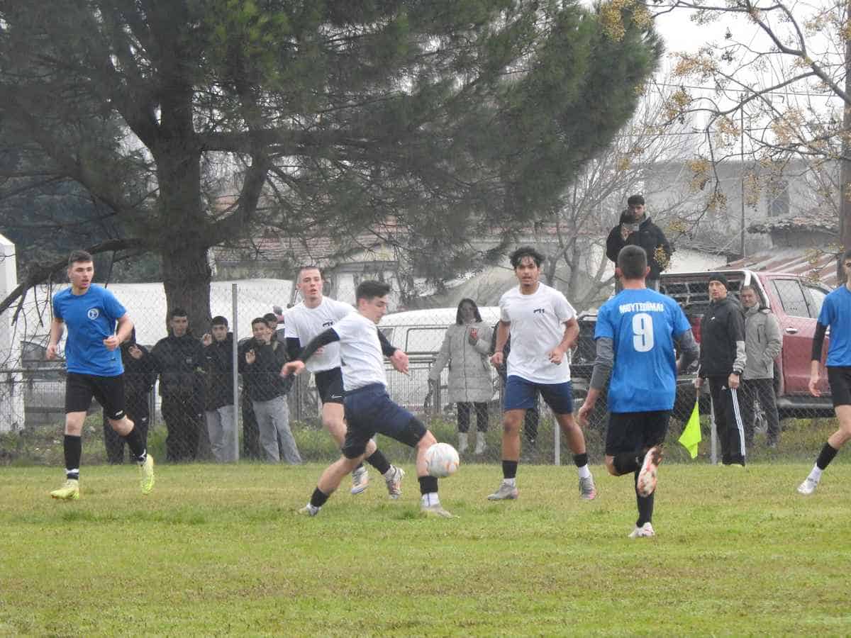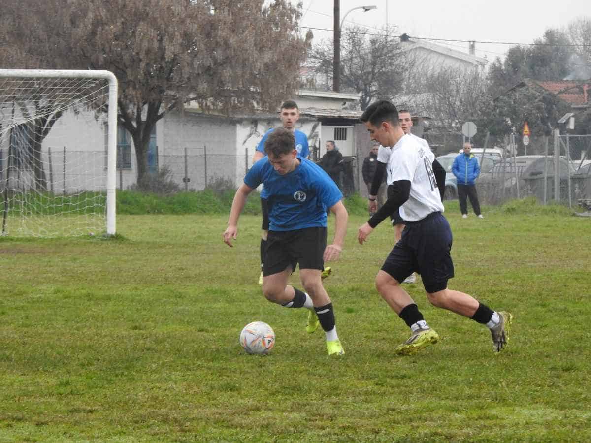Στο 42’ ο Μπουχώρης δοκίμασε το πόδι του από μακριά και αστόχησε. Τρία λεπτά αργότερα το Πρότυπο ΕΠΑΛ Τρικάλων «άνοιξε» το σκορ. Ο Παλαντζάς σούταρε δυνατά από αρκετή απόσταση, απέκρουσε ο Καπέλας και ο Βασιλείου με νέο σουτ πέτυχε το 1-0.
