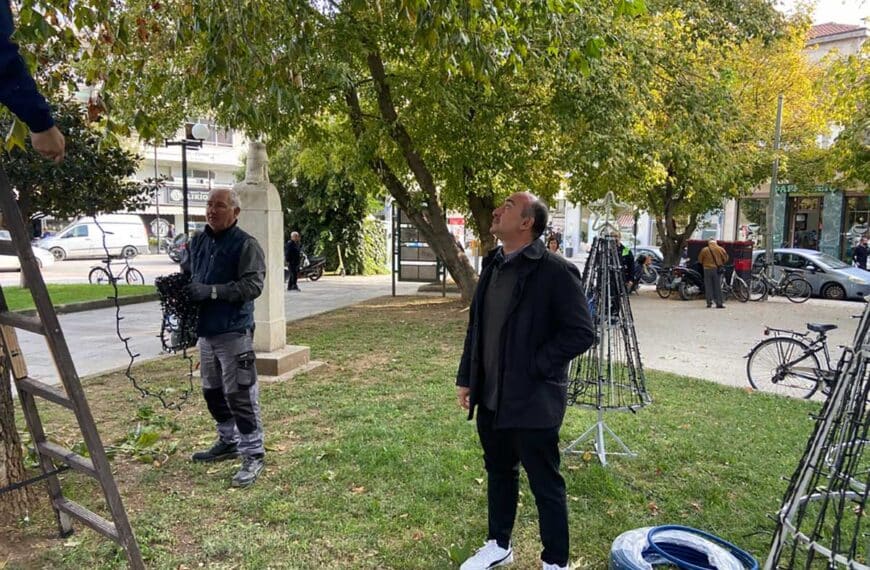 Γιορτινή λάμψη στα Τρίκαλα: ο Δήμαρχος Νίκος Σακκάς επιθεώρησε τον στολισμό και έδωσε το σύνθημα για τον 14ο Μύλο των Ξωτικών.