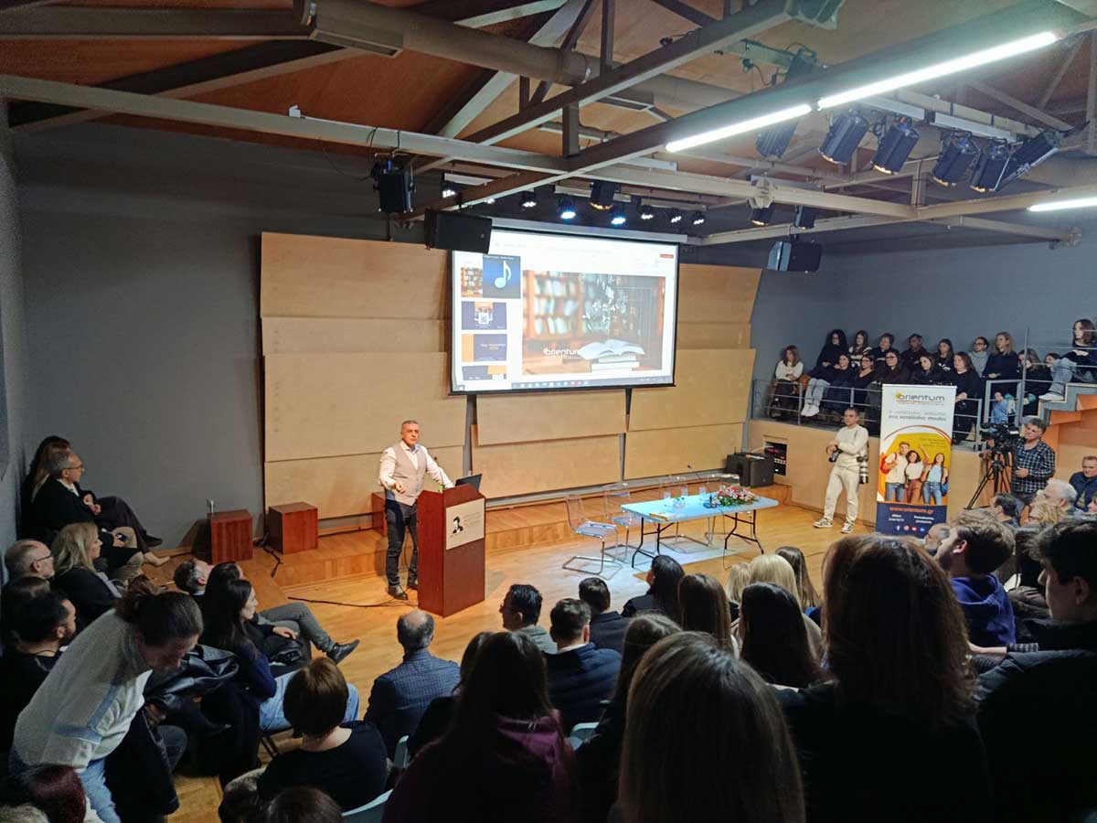 Ακολούθησε ο μοναδικός Δρ. Ιωάννης Κουτεντάκης, ο οποίος συγκαταλέγεται στο κορυφαίο 2% του παγκόσμιου ερευνητικού γίγνεσθαι και μέσα από τη βιωματική του ομιλία ανέφερε ότι η πορεία στη ζωή δεν είναι γραμμική και ότι το βιογραφικό μας αρχίζουμε να το χτίζουμε από την 1η μέρα σπουδών μας, μένοντας σε εγρήγορση, αναζητώντας μονοπάτια και ανακαλύπτοντας τους θησαυρούς που η δια βίου μάθηση μπορεί να προσφέρει.