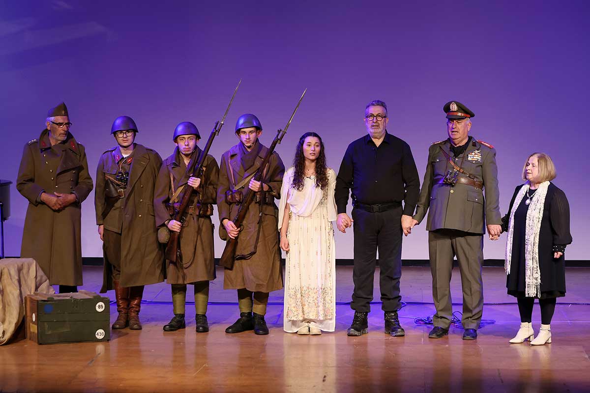 Η παράσταση περιλάμβανε διάλεξη, αφήγηση ιστορικών γεγονότων, προβολές οπτικού υλικού, τραγούδια εμπνευσμένα από το έπος του 1940 και θεατρικό δρώμενο, μεταφέροντας τους παρευρισκόμενους στο κλίμα της εποχής.