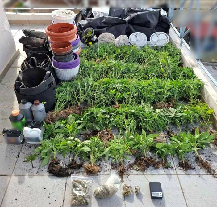 Συνολικά κατασχέθηκαν 51 δενδρύλλια κάνναβης, ύψους από 40 έως 90 εκατοστά, καθώς και εκτενής εξοπλισμός υδροπονίας, που περιλάμβανε θαλάμους καλλιέργειας, δεκάδες γλάστρες, ανεμιστήρες, λάμπες, χρονοδιακόπτες και λιπάσματα — εξοπλισμός που δύσκολα περνά απαρατήρητος σε ένα διαμέρισμα.