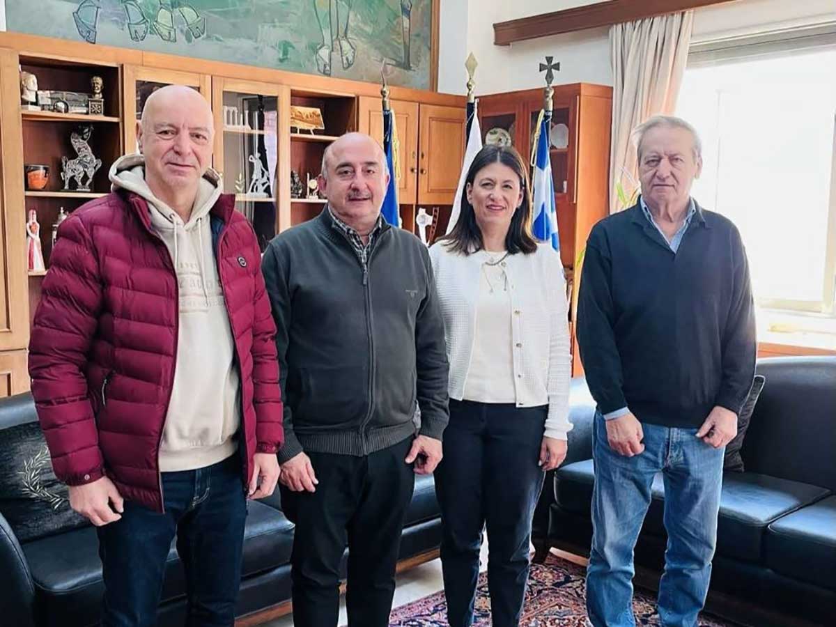 Ο δήμαρχος υποδέχθηκε τον πρόεδρο της Ομοσπονδίας Μιχάλη Μαγειρία, την αντιπρόεδρο Αθανασία Δρόσου, τον γενικό γραμματέα Κωνσταντίνο Στούπα και το στέλεχος της Ομοσπονδίας κ. Σουφλιά.