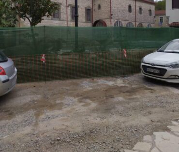 «Στην περιοχή της παραδοσιακής συνοικίας ΒΑΡΟΥΣΙ υλοποιούνται έργα διαμόρφωσης του οδικού δικτύου και της πλατείας της Αγ. Επίσκεψης. Ειδικά στην πλατεία της εκκλησίας εχουν ήδη ξεκινήσει εργασίες διάστρωσης , όχι με κυβόλιθους, αλλά με πλάκες των οποίων τις διαστάσεις δεν γνωρίζουμε λόγω του ότι ο χώρος εργασιών είναι περίκλειστος. Επίσης μεταξύ πλακών υπάρχουν αρμοί. Επειδή στις εγκεκριμένες μελέτες αναφέρεται η χρήση κυβόλιθων με διαστάσεις 10χ10χ7 εκ., ως το βασικό υλικό των λιθόστρωτων επιφανειών στην πλατεία της εκκλησίας και στο δίκτυο της συνοικίας παρακαλούμε να μας ενημερώσετε εγγράφως εάν γνωρίζετε για την σκοπιμότητα αυτής της αλλαγής, από κυβόλιθους σε λιθοπλάκες καθώς και για τις σχετικές αποφάσεις των υπηρεσιών του Υπουργείου Πολιτισμού που εγκρίνουν αυτή την αλλαγή. Σημειώνουμε δε, πως αυτή η διαφοροποίηση ως προς το υλικό διαστρωσης πραγματοποιήθηκε προς μεγάλη έκπληξή μας, διότι στην τελευταία συνάντηση μας, με τις τεχνικές υπηρεσίες του Δήμου Τρικκαίων, όχι μόνο δεν ενημερωθήκαμε σχετικά αλλά είχαμε την προφορική διαβεβαίωση, ότι οι κυβόλιθοι (και όχι οι χρησιμοποιούμενες λιθοπλάκες) θα τοποθετούνταν εν ξηρώ, σύμφωνα με την παραδοσιακή τεχνική των καλντεριμιών. Επίσης σας παρακαλούμε να ενεργήσετε άμεσα γιατί οι εργασίες γίνονται με εντατικούς ρυθμούς και εάν είναι εφικτό να μας ενημερώσετε σχετικά»