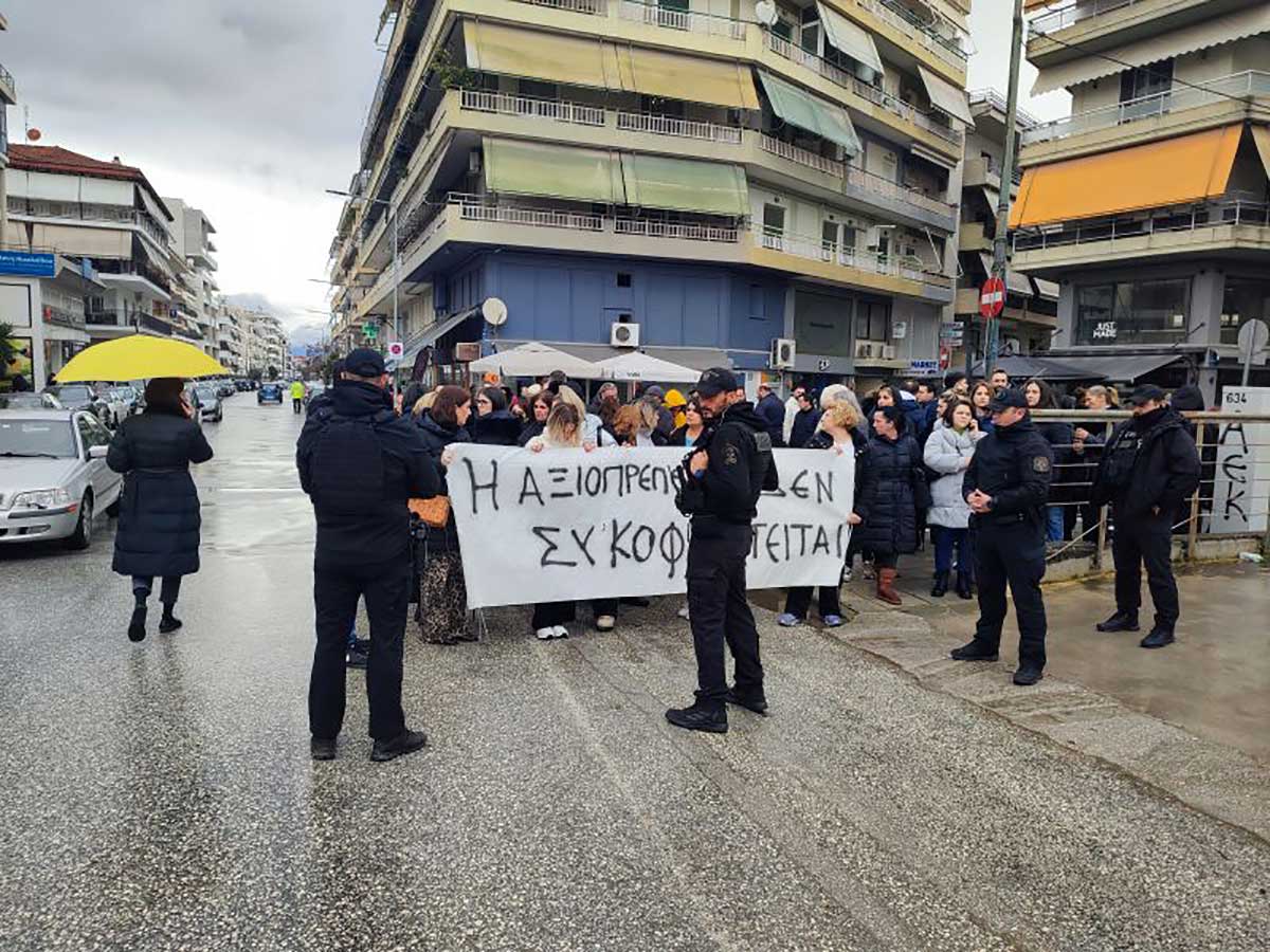 Έξω από το Δικαστικό Μέγαρο Τρικάλων είχαν συγκεντρωθεί εργαζόμενοι της εταιρείας σε ένδειξη συμπαράστασης προς τον εργοδότη τους, κρατώντας πανό με συνθήματα. Το κλίμα παρέμεινε ήρεμο καθ’ όλη τη διάρκεια της διαδικασίας, ενώ στο σημείο βρίσκονταν αστυνομικές δυνάμεις για προληπτικούς λόγους.